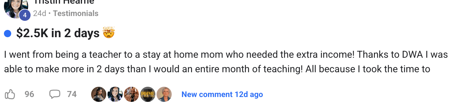You can start applying the strategies immediately after joining. With DWA, it’s possible to make your first sale on the same day. However, this isn’t a shortcut to instant wealth—your results will depend on how effectively you implement what you learn.