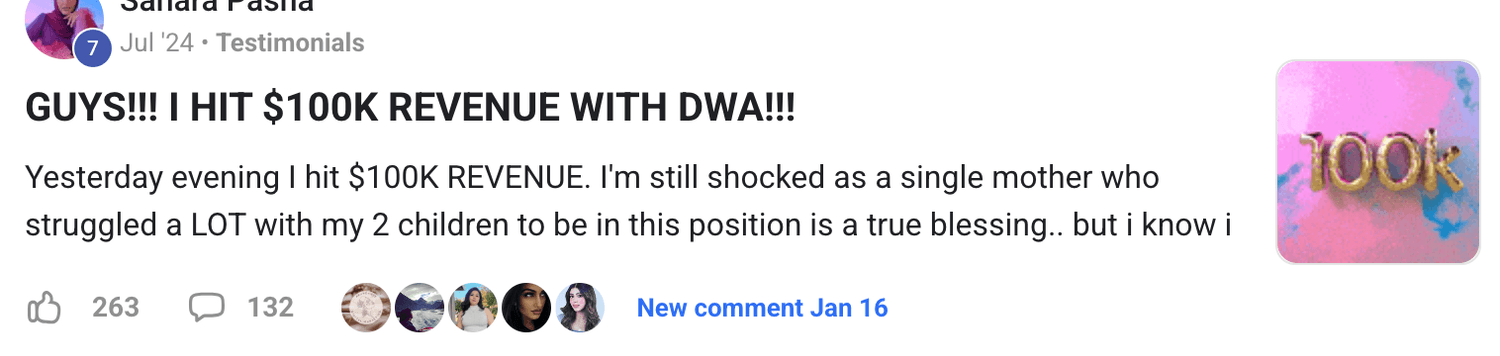 You'll become part of the DWA community, gain access to weekly live calls, and receive ongoing updates with fresh content. Plus, if you ever need help, I’m just a message away!