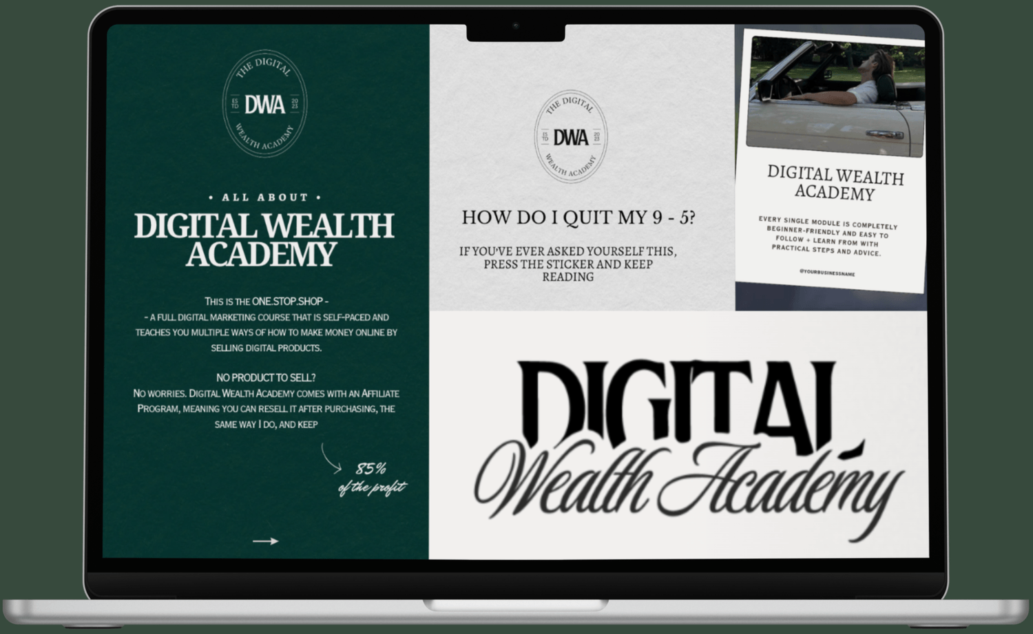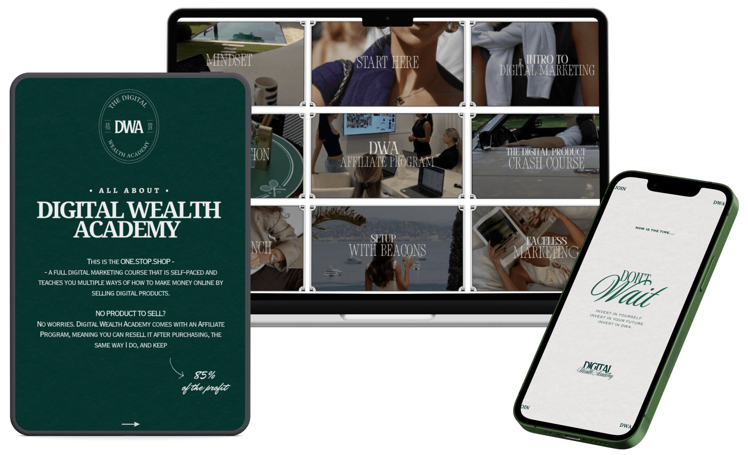 DWA is a comprehensive digital marketing course tailored for beginners eager to generate real income online. This program covers everything from developing digital products and affiliate marketing to content creation and setting up automated sales systems—plus much more! And the best part? You can also join as an affiliate for one of the fastest-growing courses and earn up to 85% in commissions!